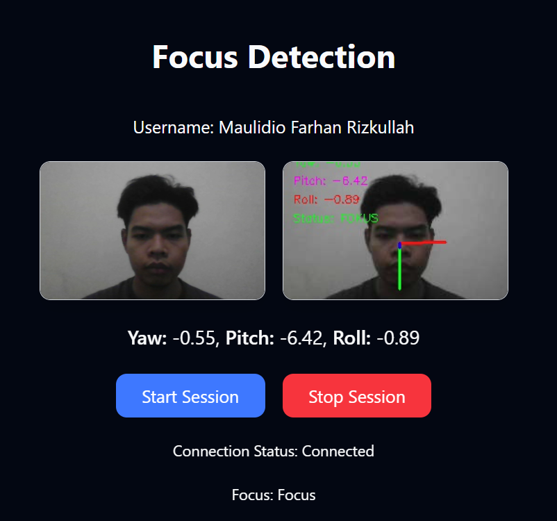 Real-time focus detection system to monitor student engagement in gamified learning, utilizing a MobileNetV2-based deep learning model for head pose analysis, and engineered a Flask & Socket.IO backend to support multi-user video streaming